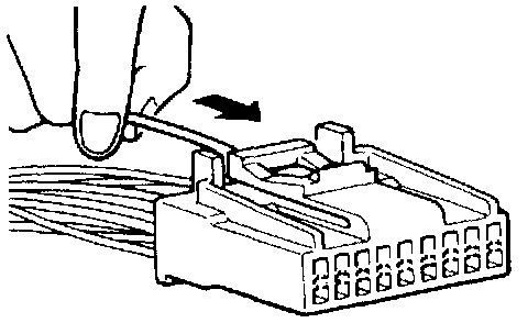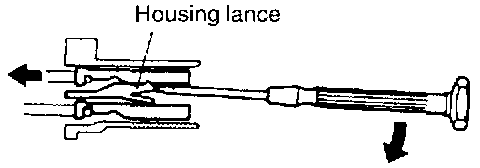 A connector that engages loosely can be repaired by removing the female terminal from the connector housing and raising its lance to establish securer engagement. Removal of the connector terminal used for MFI and ELC-4 A/T control circuit can be done in the following manner.