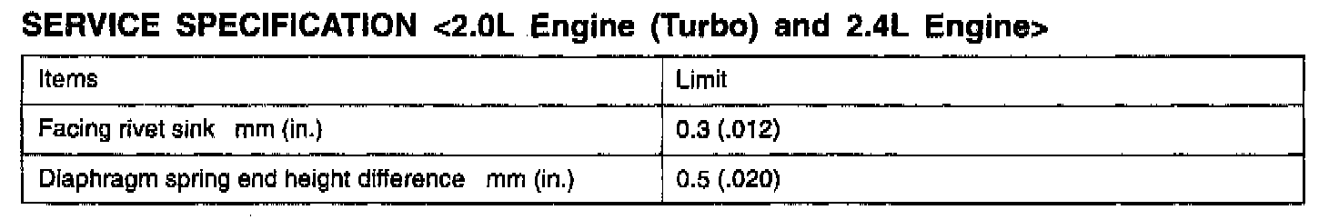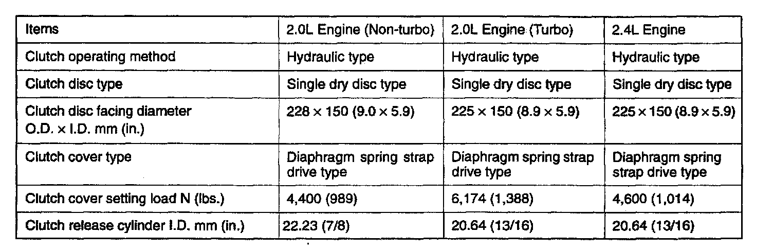 F5M31/F5M33/W5M33 5-spd M/T, Clutch Standard Values: