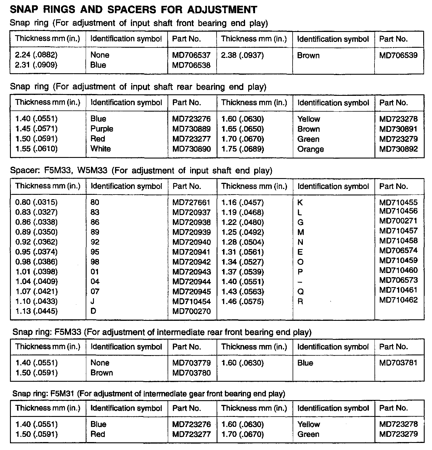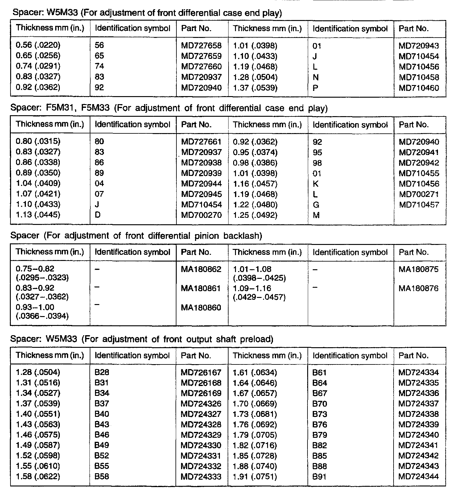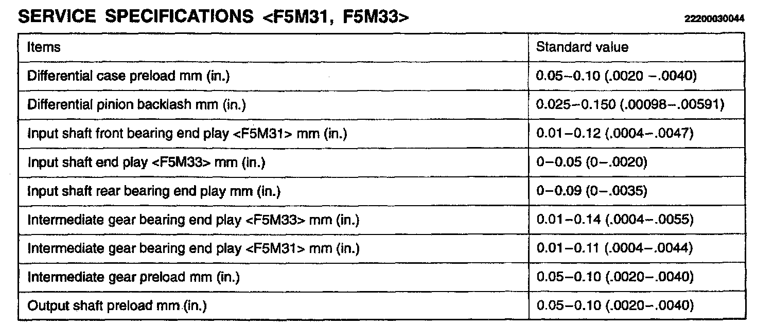 F5M31/F5M33/W5M33 5-spd M/T, Differential End Play, Backlash & Preload: