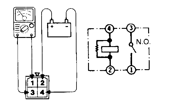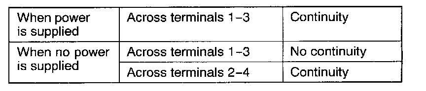 Apply battery power to terminal (2) and connect terminal (4) to the ground. Check for continuity across the terminals.