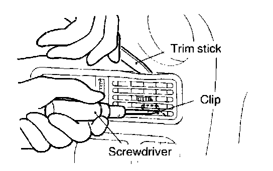 Disengaging the clips (2 positions) of the center air outlet assembly with a flat tip screwdriver, remove the center air outlet assembly with a plastic trim stick.