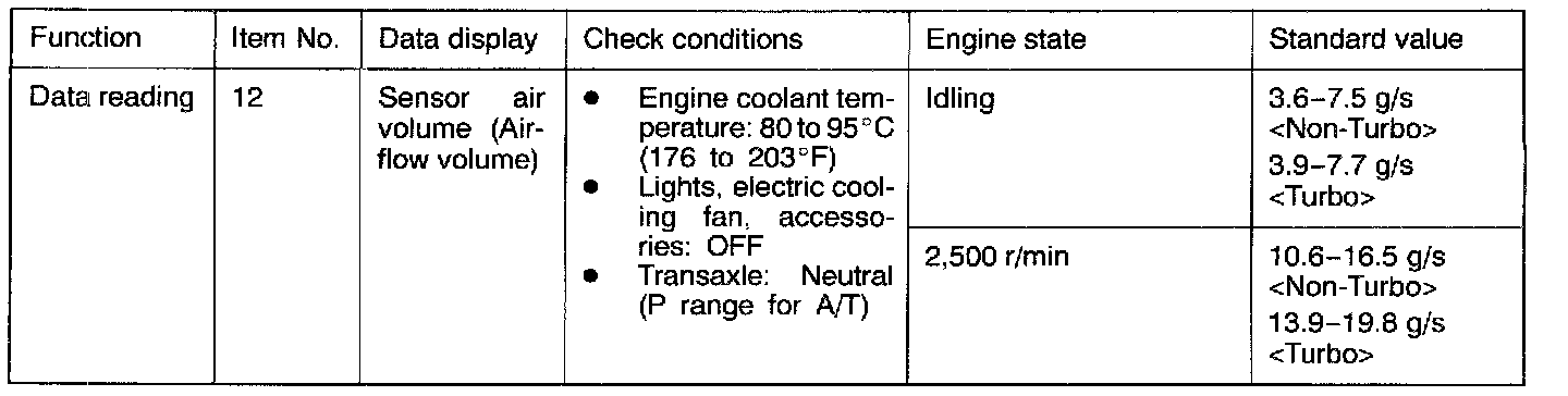 If the engine can be run idle even though the volume air flow sensor output frequency is out of specification, troubles are often found in other than the volume air flow sensor itself.