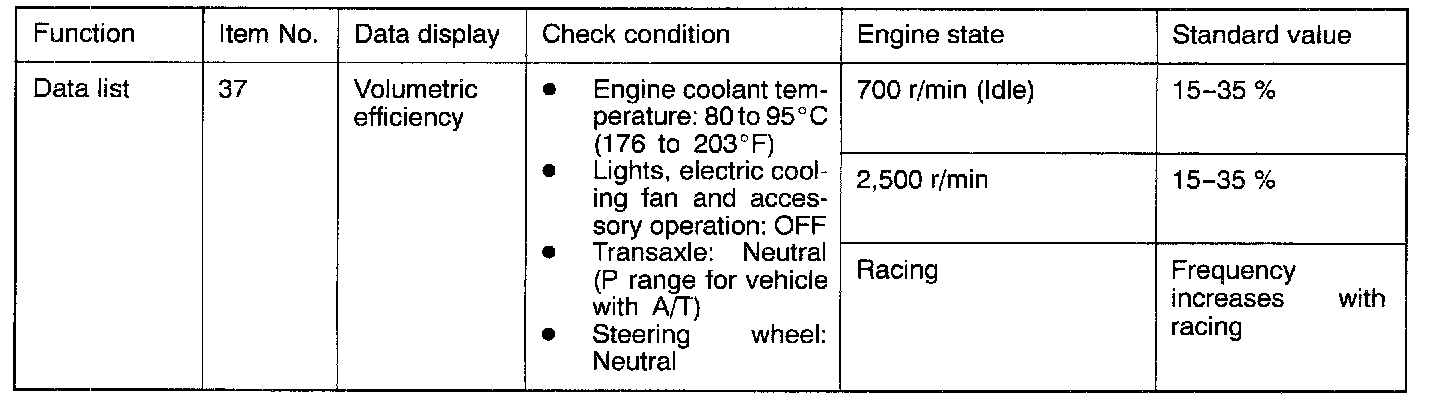 NOTE: When the vehicle is new [within initial operation of about 500 km (300 miles)], the volume air flow sensor output frequency may be about 10% higher.