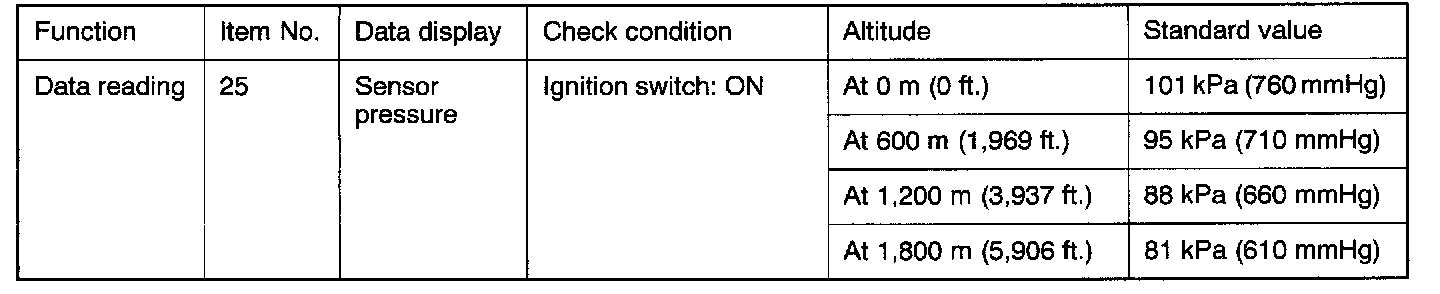 If the pressure indication of the barometric pressure sensor drops significantly during high speed driving, check the air cleaner for clogging.