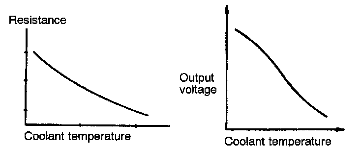- The engine coolant temperature sensor terminal voltage increases or decreases as the sensor resistance increases or decreases. Therefore, the engine coolant temperature sensor terminal voltage changes with the coolant temperature, decreasing as the temperature rises.