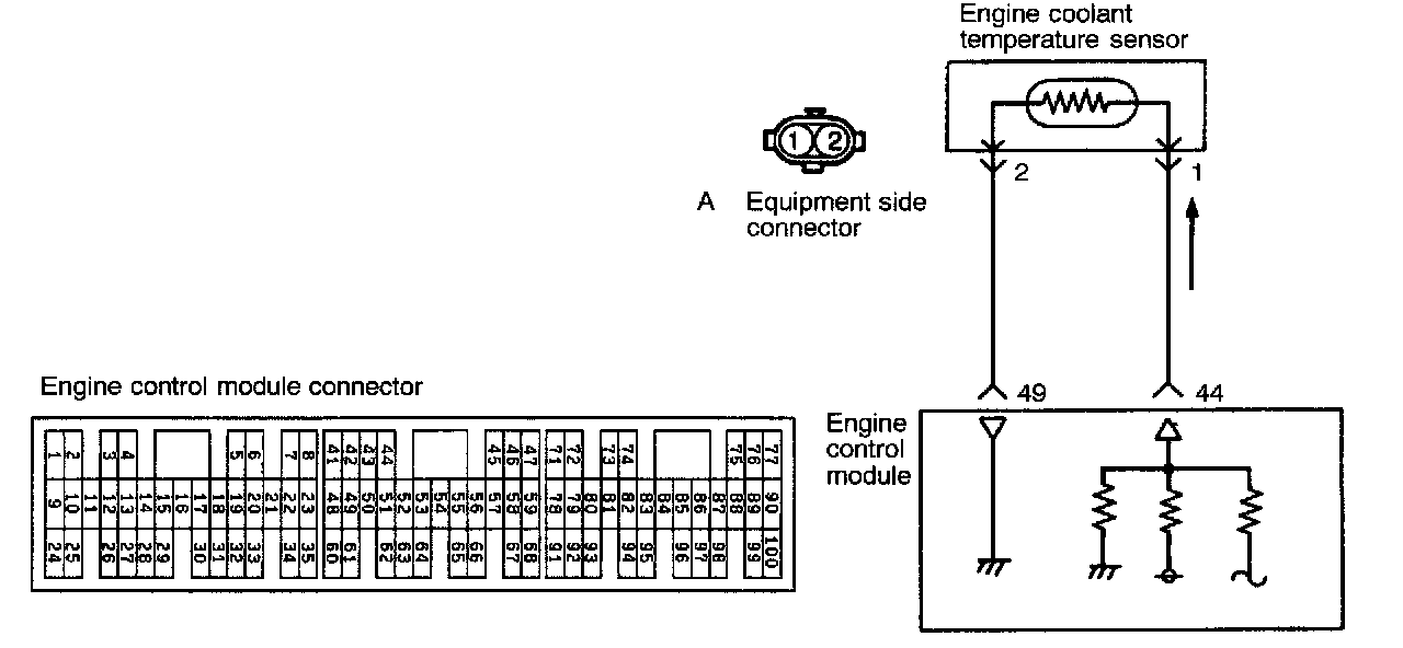 - The 5 V power in the engine control module is supplied via a resistor in the module to the engine coolant temperature sensor. Through the sensor which is a kind of resistor, it is grounded in the engine control module The engine coolant temperature sensor resistor has the characteristic of decreasing its resistance decreases as the coolant temperature rises.