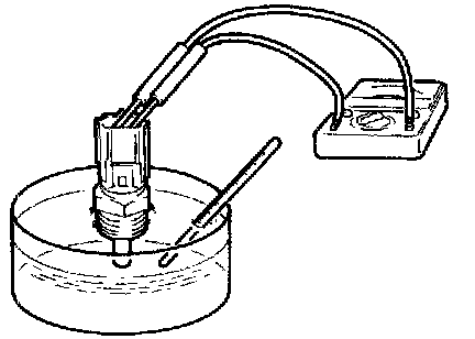 2. With temperature sensing portion of engine coolant temperature sensor immersed in hot water, check resistance.