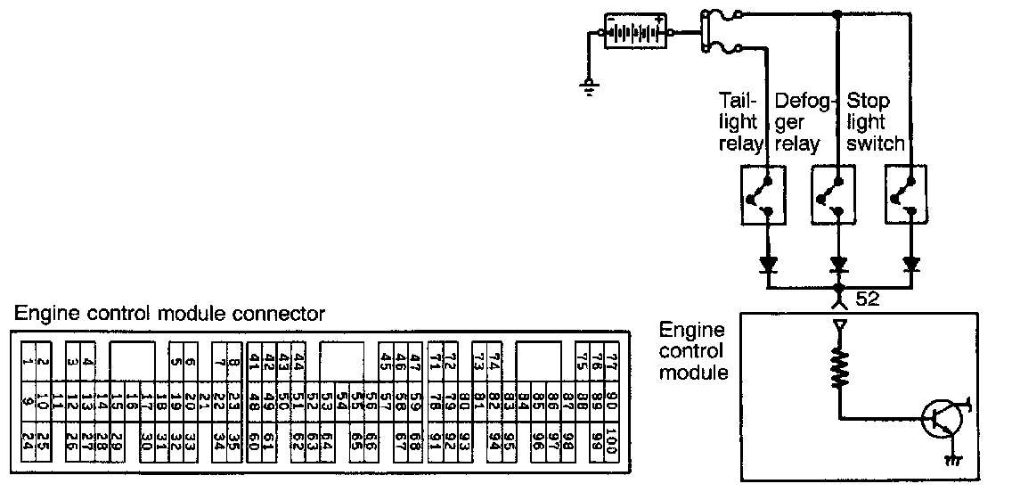 - When the switch of equipment with a large electrical load is turned ON, the battery voltage is applied to the engine control module to indicate that the equipment switch is turned ON.