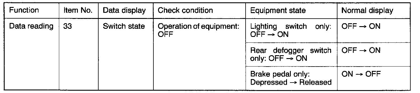 - Brake pedal: Depressed (Stop light switch ON)