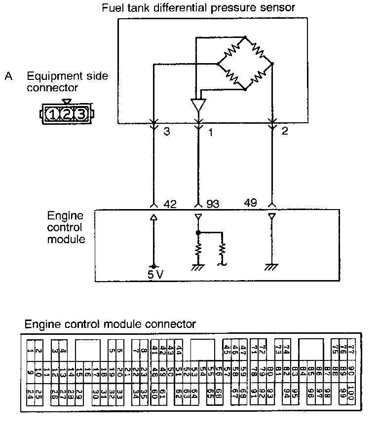 - 5 V of power is supplied to the fuel tank differential pressure sensor from the engine control module, and the sensor circuit ground is located in the engine control module.