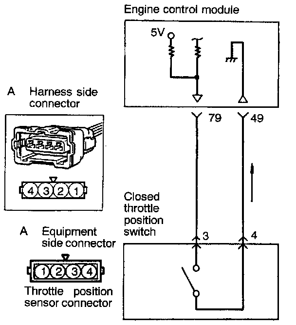 - The voltage in the engine control module is applied to the closed throttle position switch through a resistor. When the accelerator pedal is released, the closed throttle position switch is turned on to conduct the voltage to ground. This causes the closed throttle position switch terminal voltage to go low from high.