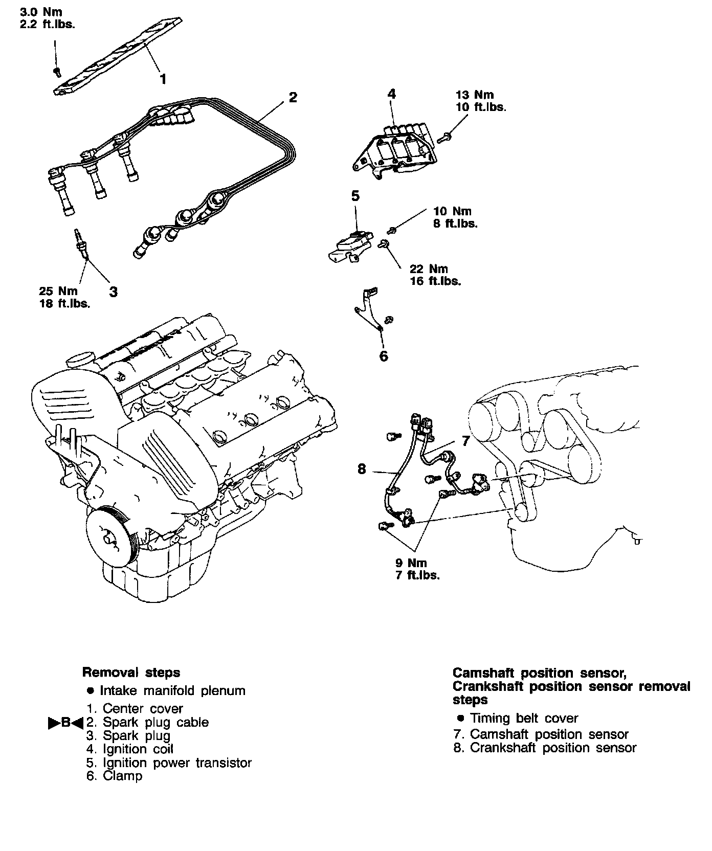 Improper arrangement of spark plug cables will induce voltage between the cables, causing miss firing and developing a surge at acceleration in high-speed operation. Therefore, be careful to arrange the spark plug cables properly by the following procedure.