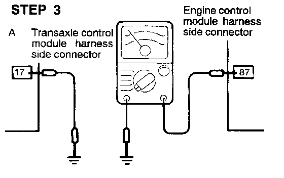 This will change the terminal voltage of the transaxle control module from HIGH to LOW. If the transistor tilled inside the engine control module changes from ON to OFF, the terminal, having applied to it a voltage of 5 V from the transaxle control module and grounded in the engine control module, is released and the terminal voltage of the transaxle control module changes from LOW to HIGH. In this way, the terminal voltage of the transaxle control module is controlled by ON/OFF operation of the transistor inside the engine control module in order to send signal.