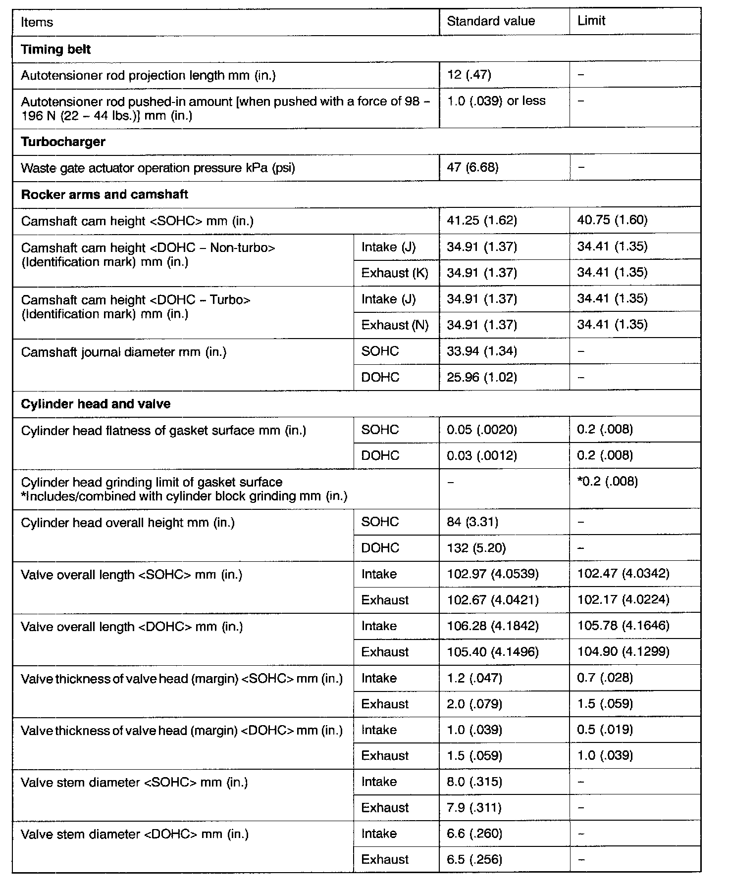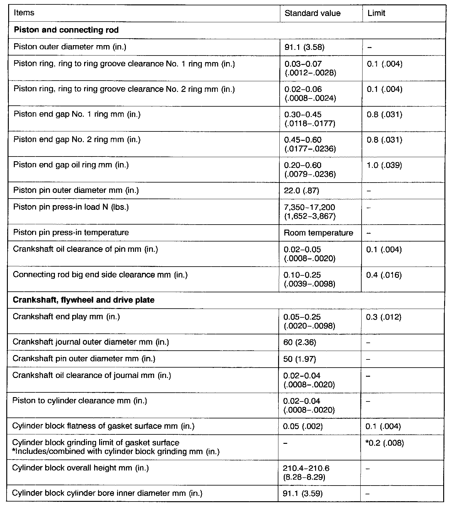 Engine-Overhaul Specifications