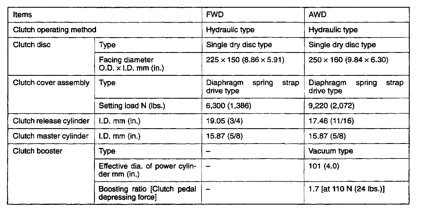 F5M33 5-spd/W6MG1 6-spd M/T, Clutch Dimensions: