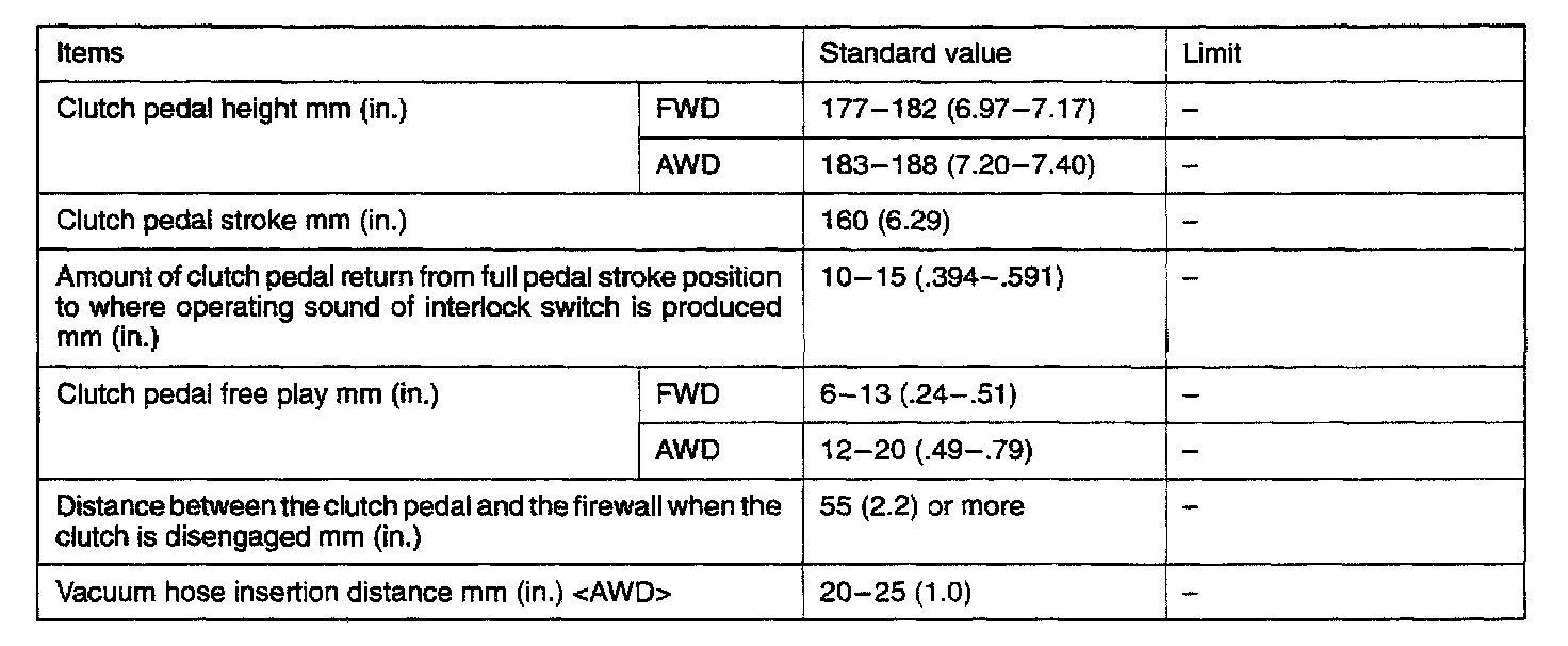 F5M33/W6MG1 M/T, Clutch Standard Values & Limit: