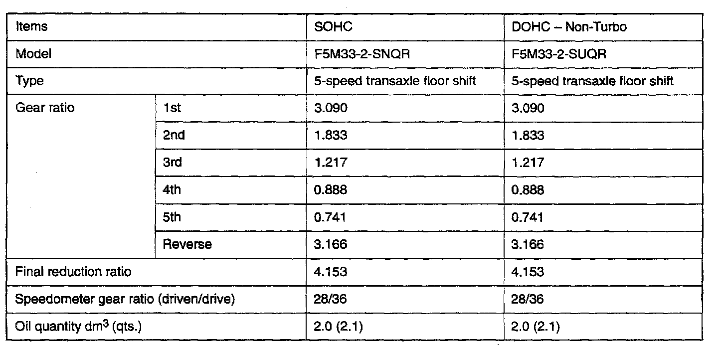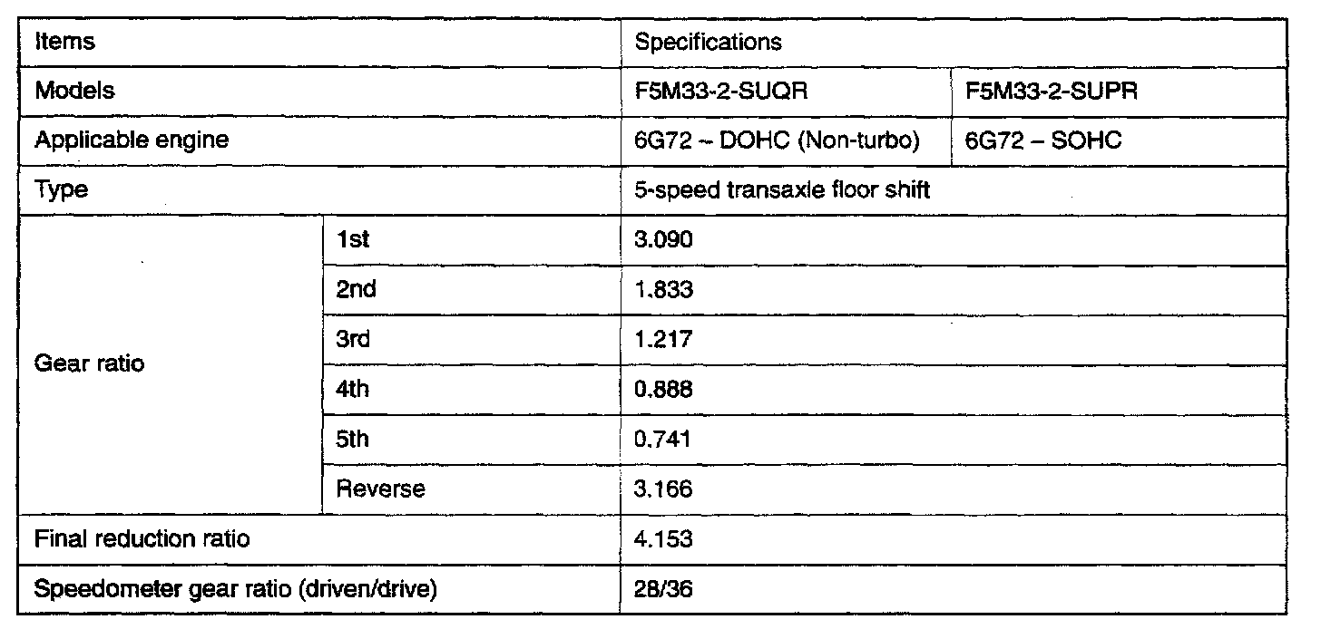 F5M33 5-spd M/T, Gear Ratios Cont.: