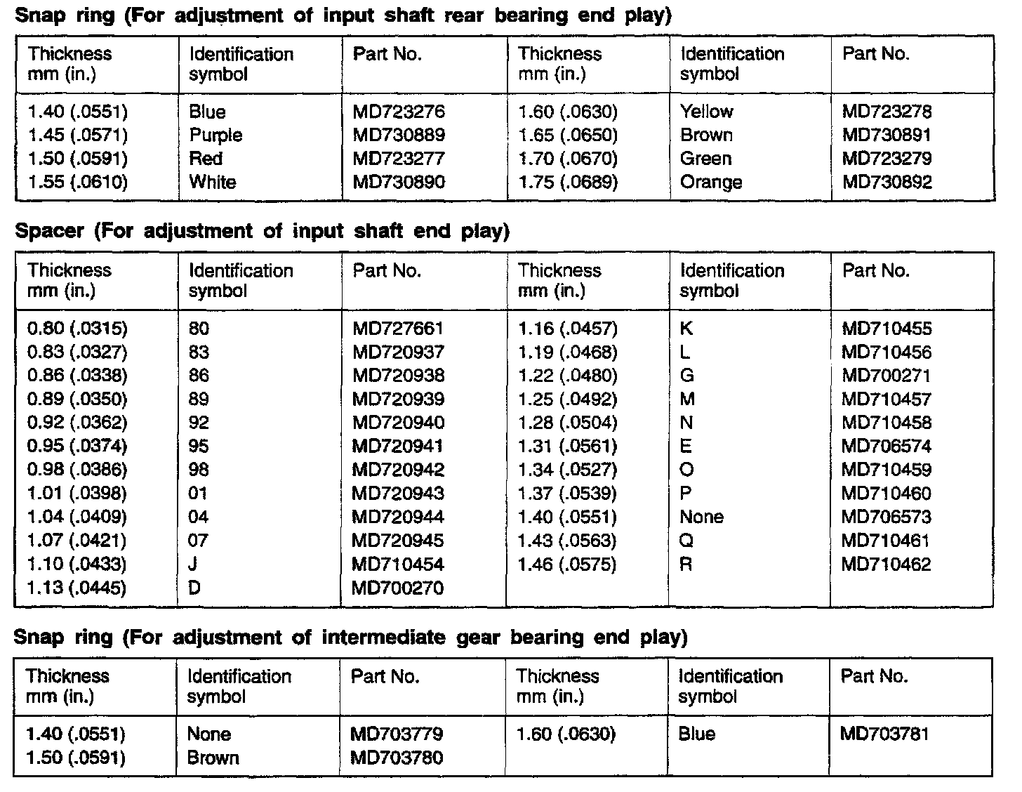 F5M33 5-spd M/T, Input Shaft End Play & Intermediate Bearing End Play: