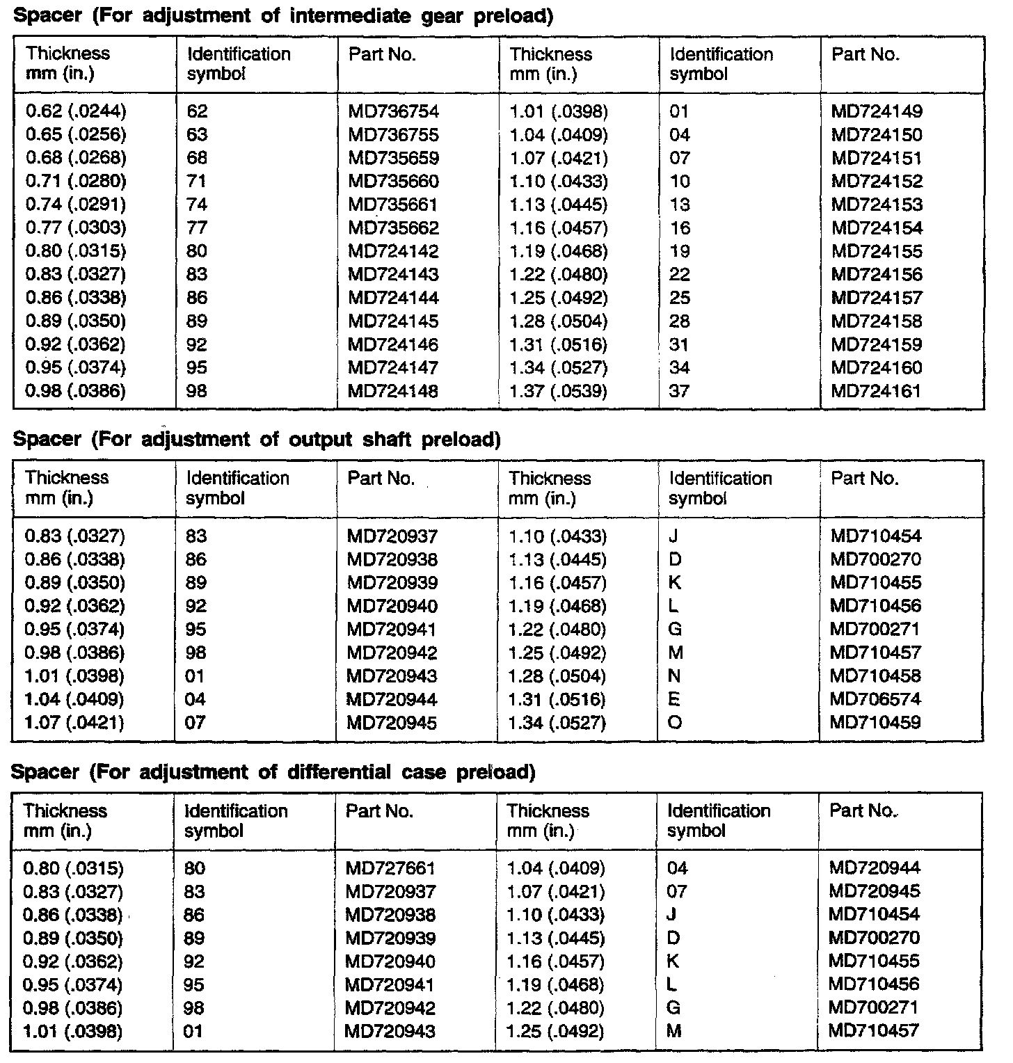 F5M33 5-spd M/T, Intermediate Gear, Output Shaft & Differential Preload: