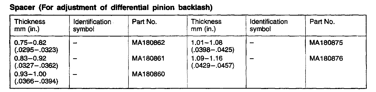 F5M33 5-spd M/T, Differential Pinion Backlash: