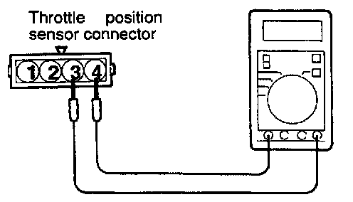 2. Check the continuity between the throttle position sensor connector side terminal 3 and terminal 4.