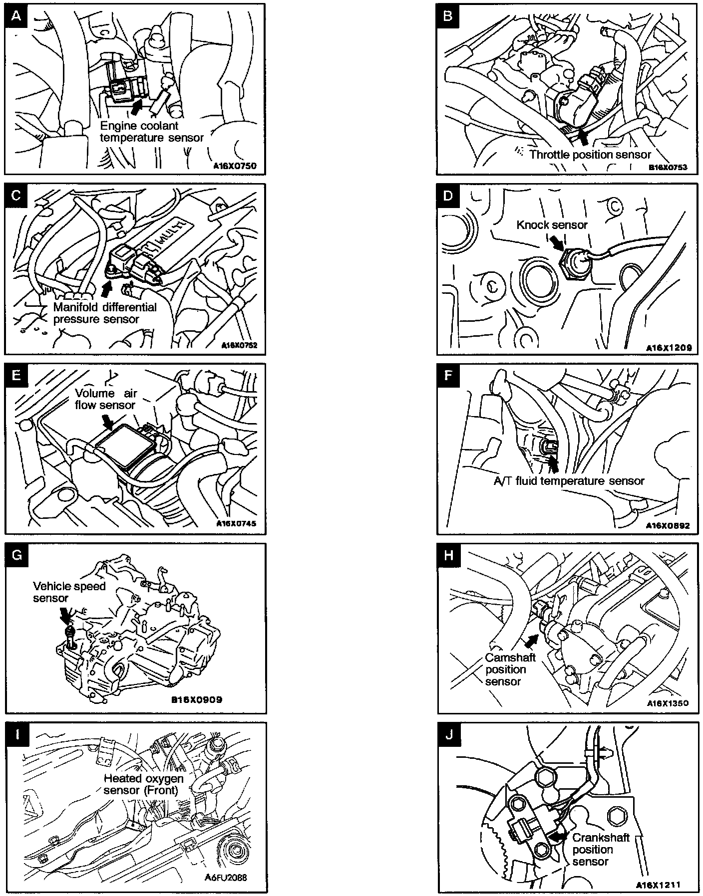 Sensor Location Views A-J: