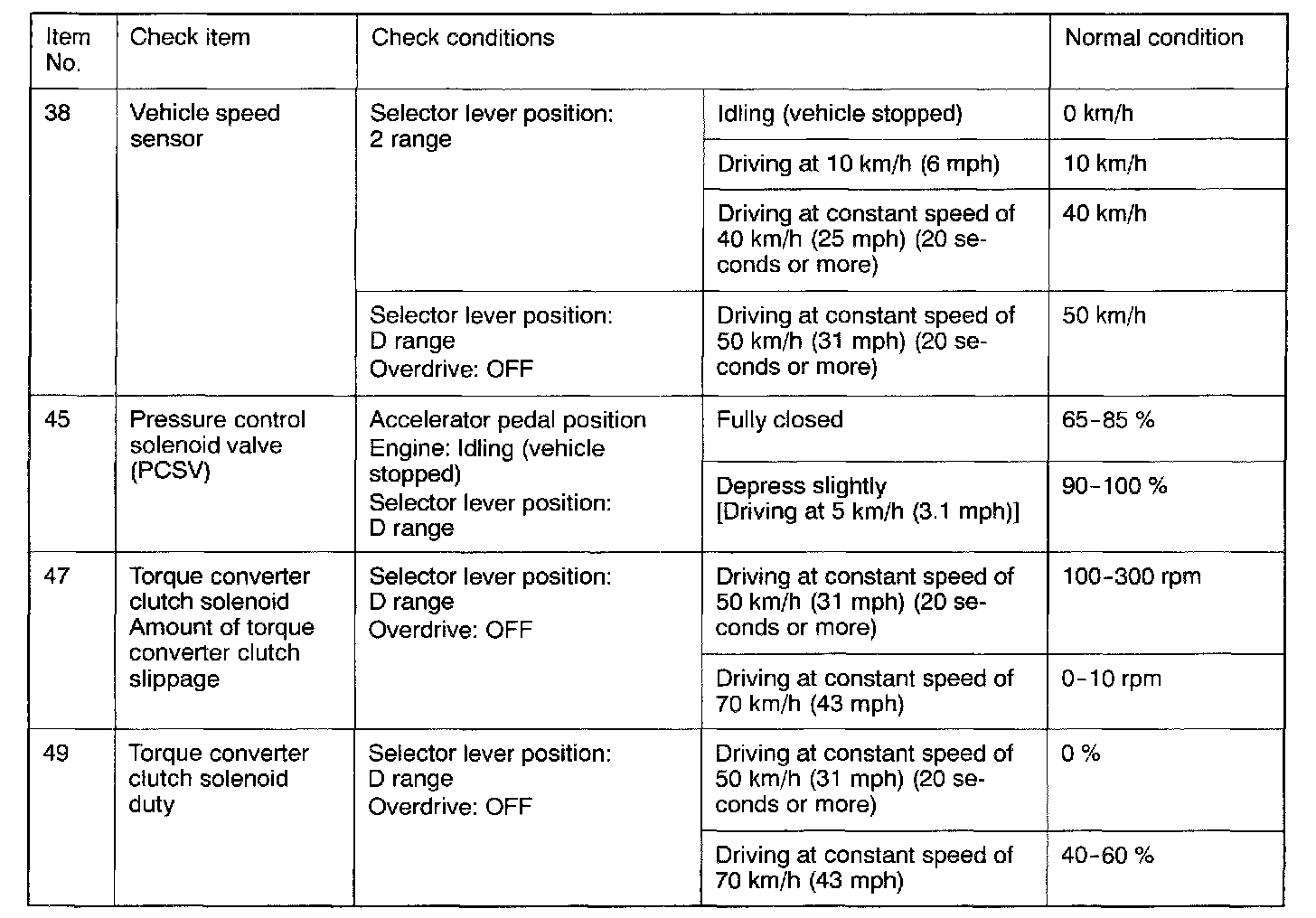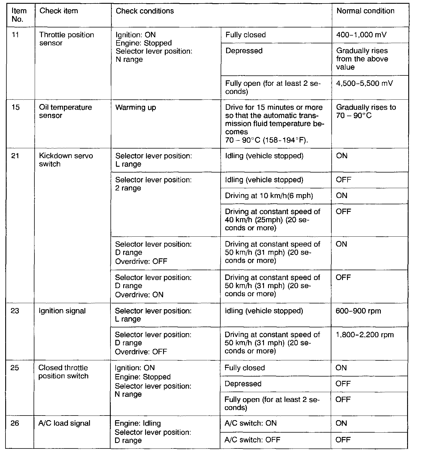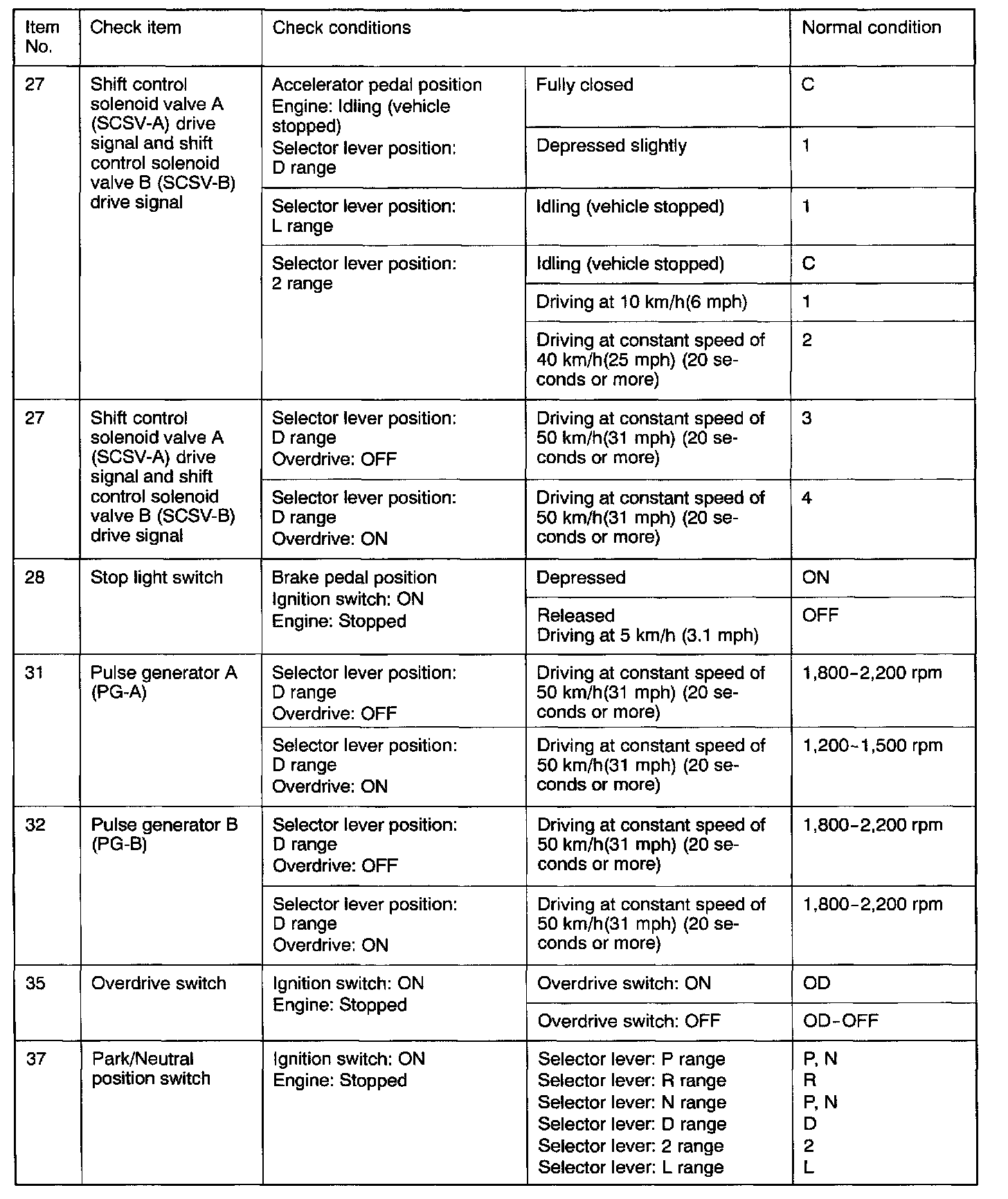 SERVICE DATA REFERENCE TABLE