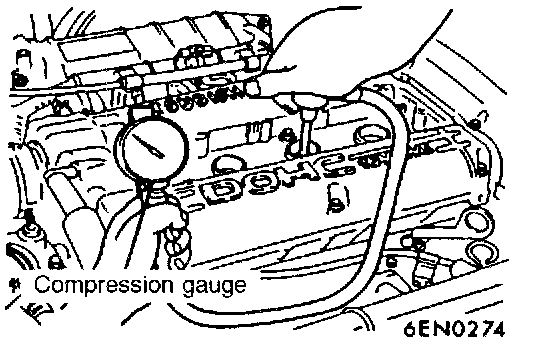 7. Crank the engine with the throttle valve fully open and measure the compression pressure.