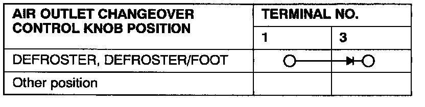 NOTE: Battery voltage should be supplied when the air outlet changeover knob is at the defroster or defroster/foot position.