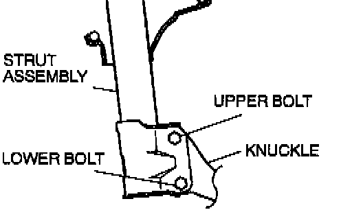 1. Estimate how much additional camber adjustment is required. Using the table below, select the camber adjusting bolt, and then replace the knuckle and strut assembly connection bolts (upper bolt, lower bolt) with the selected bolts.