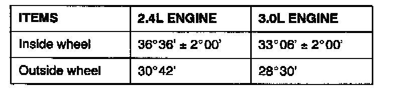 If the steering angle is not within the standard value, adjust the toe-in.