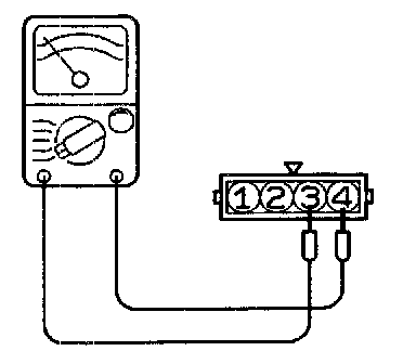 An analog-type ohmmeter should be used. Check that the resistance between terminals 3 and 4 is at the standard value.