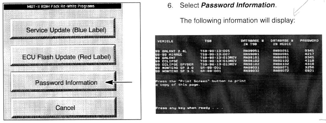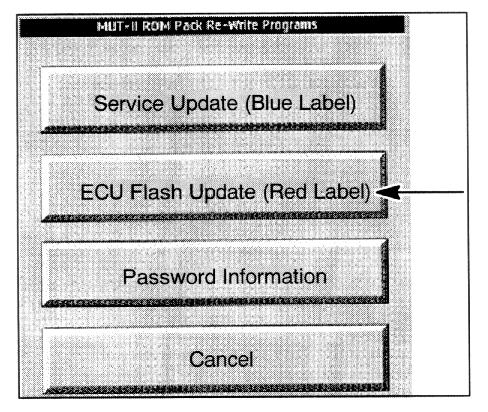 1. Install the red label ROM pack you want to update into the MUT-II.