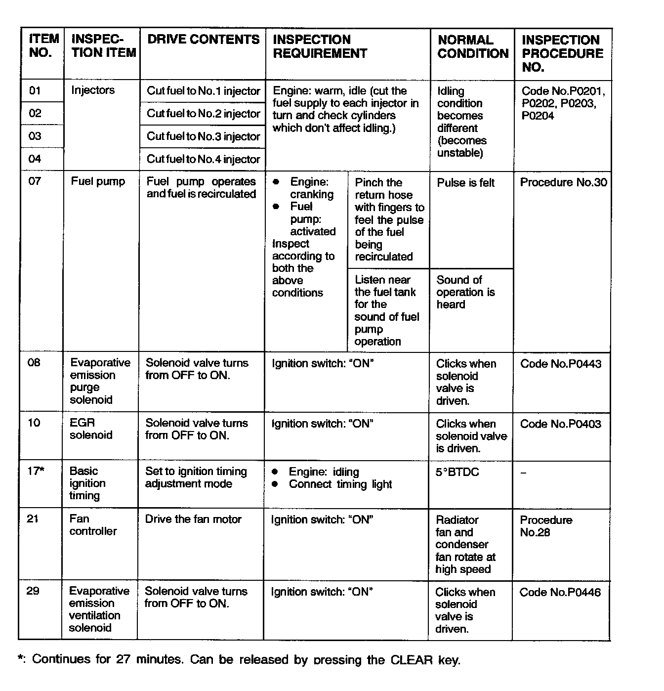 Actuator Test Reference Table: