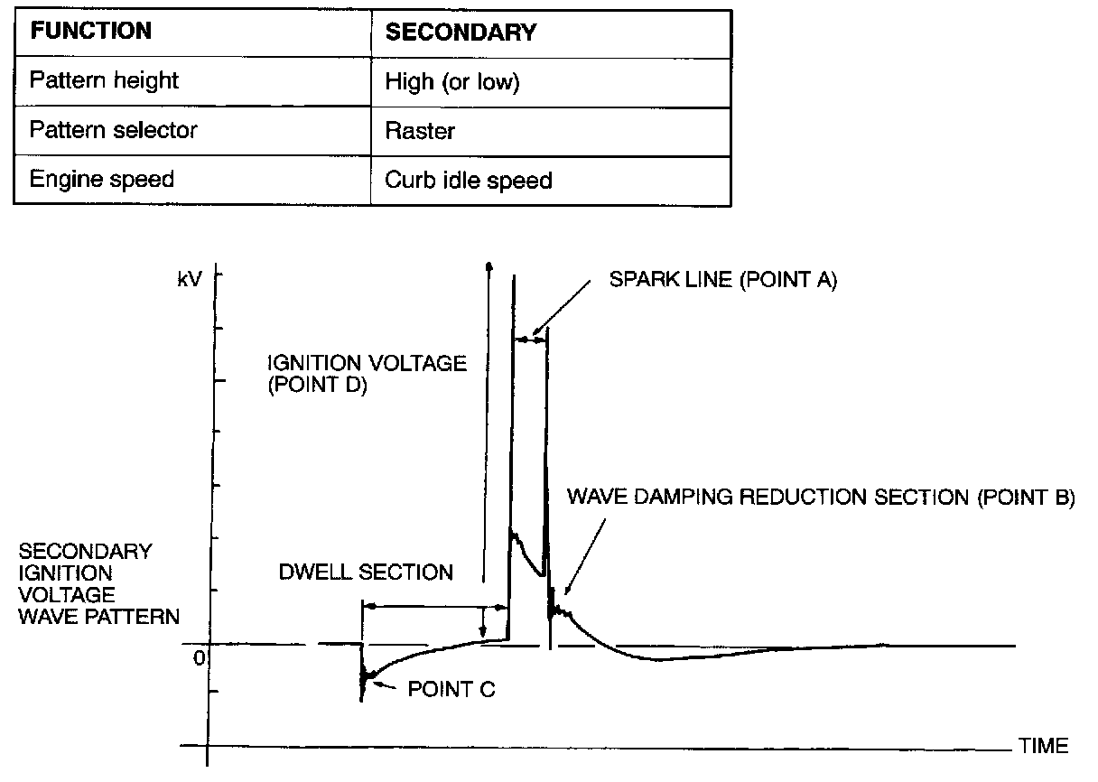 IGNITION SECONDARY VOLTAGE WAVE PATTERN CHECKMEASUREMENT METHOD