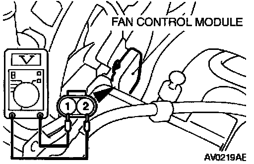 5. If the voltage does not repeatedly change as indicated, replace the radiator fan motor and the fan control module assembly.