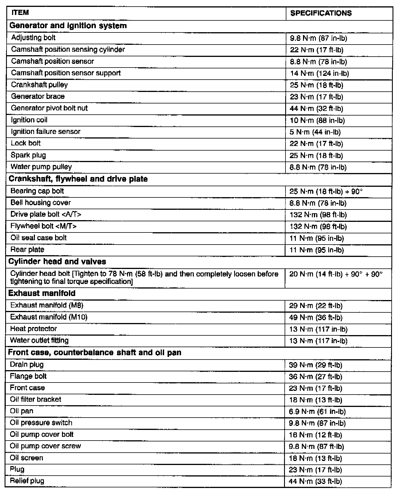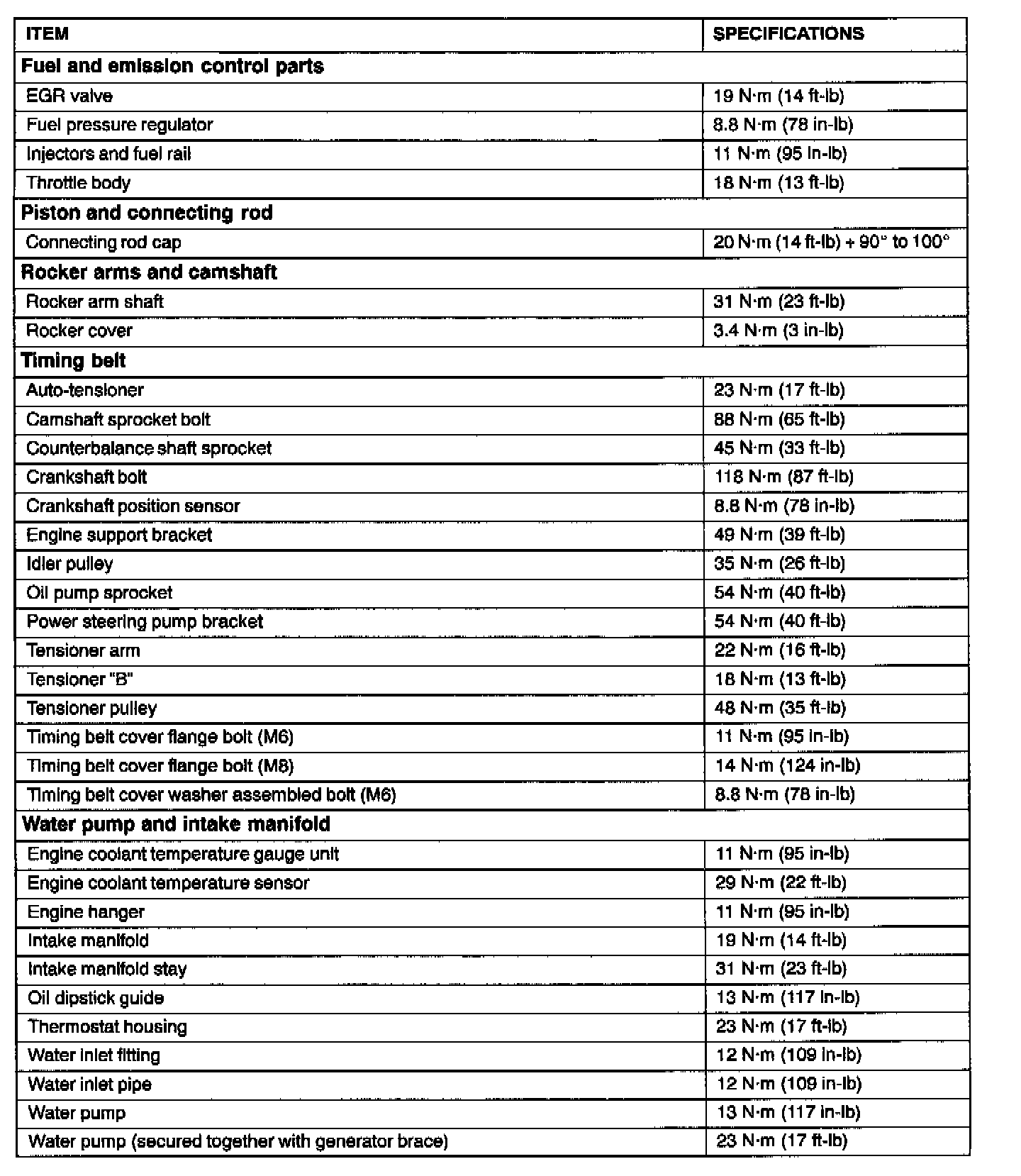 FASTENER TIGHTENING SPECIFICATIONS