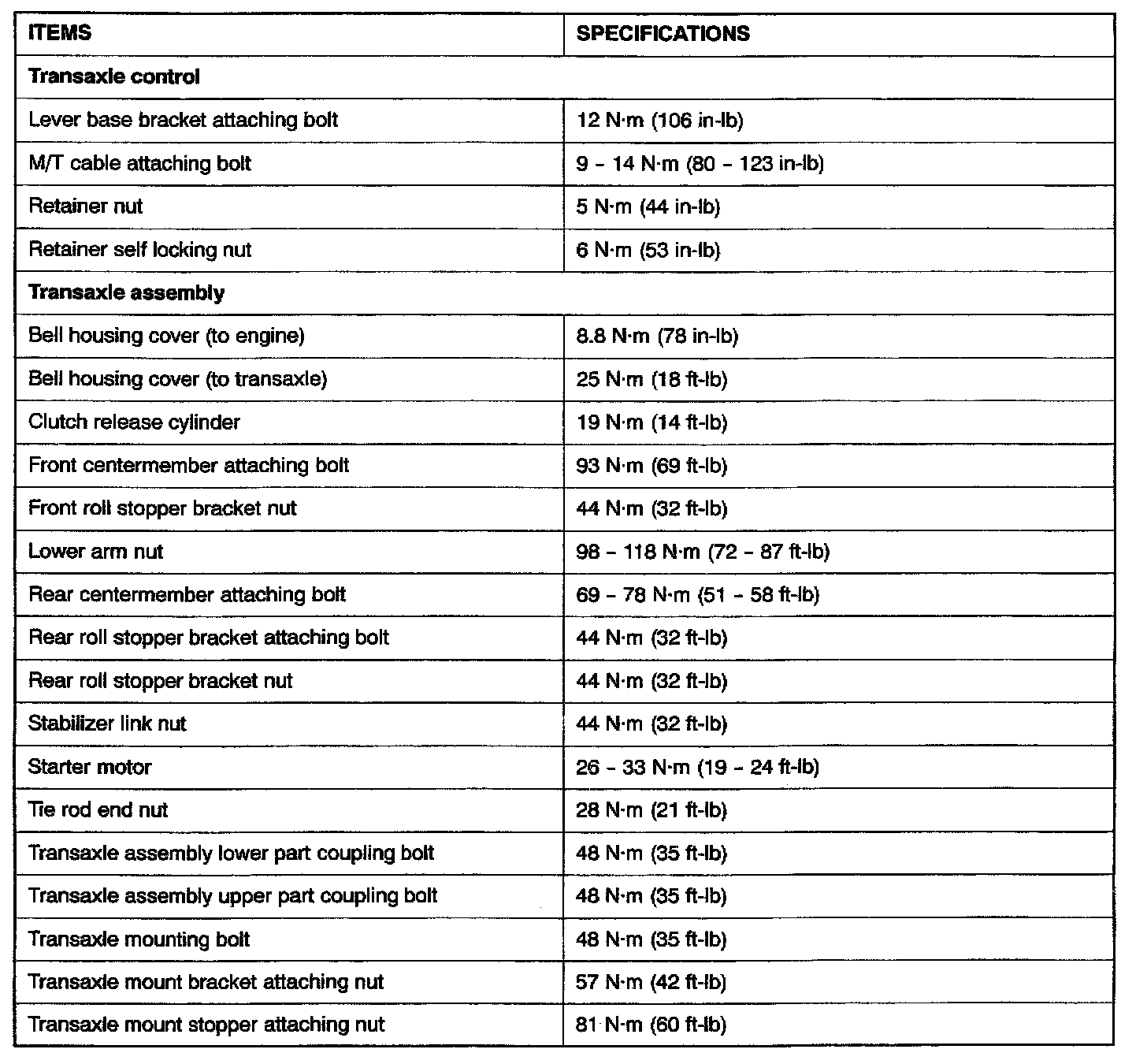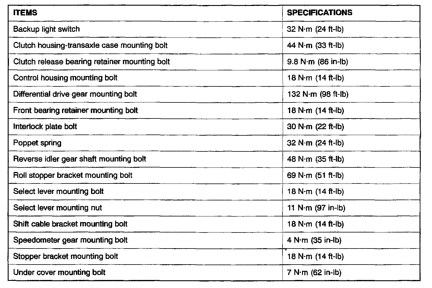 F5M42 5-spd M/T, Transaxle Torque: