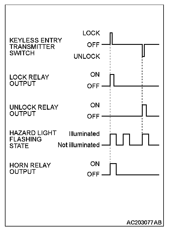 The hazard answerback and horn answerback function which facilities checking of lock or unlock operations even during day-time is provided. When the lock signal is input from the keyless entry transmitter to the ETACS-ECU, the hazard light flashes twice and horn sounds once. When the unlock signal is input, hazard light flashes once.