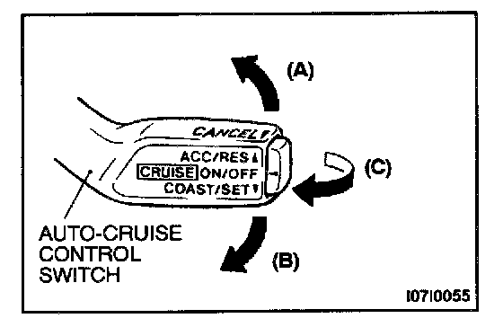 1. Set to the desired speed.2. Push the auto-cruise control switch in the direction of arrow (A).