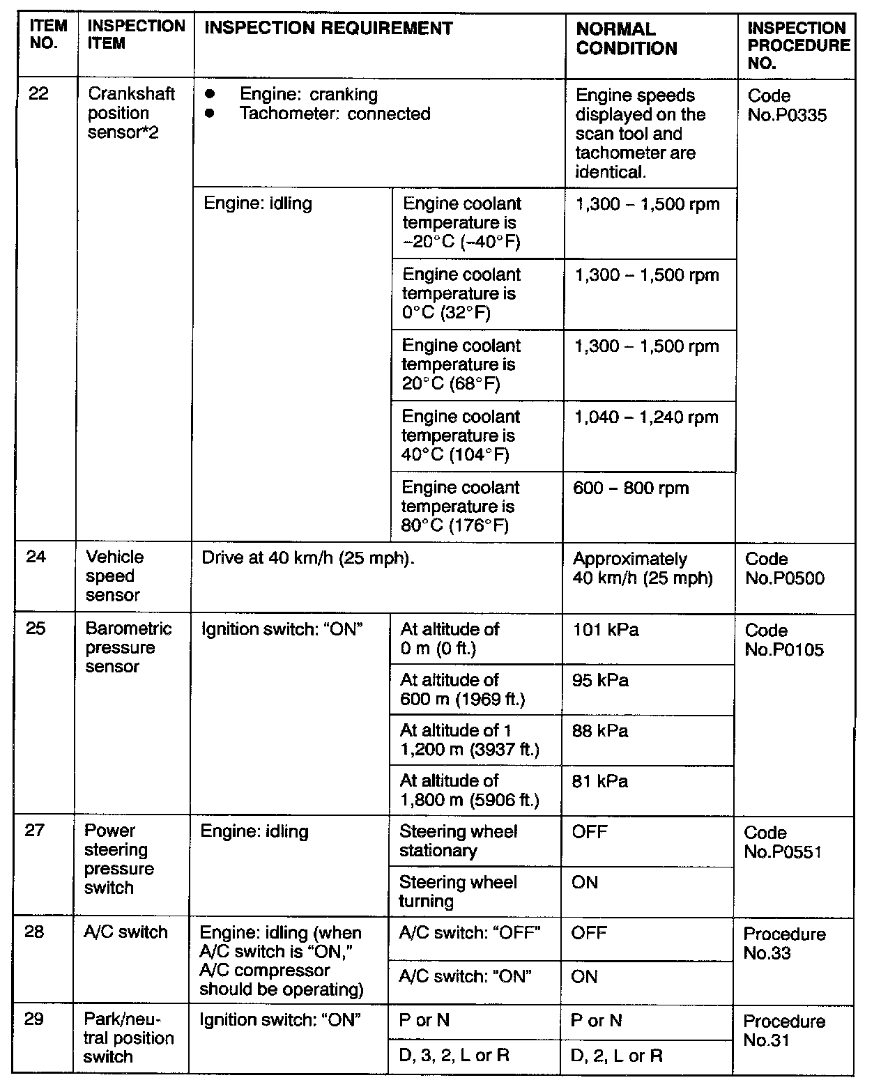 NOTE: *1: In a new vehicle [driven approximately 500 km (311 mile) or less], the volume air flow sensor output frequency is sometimes 10% higher than the standard frequency.