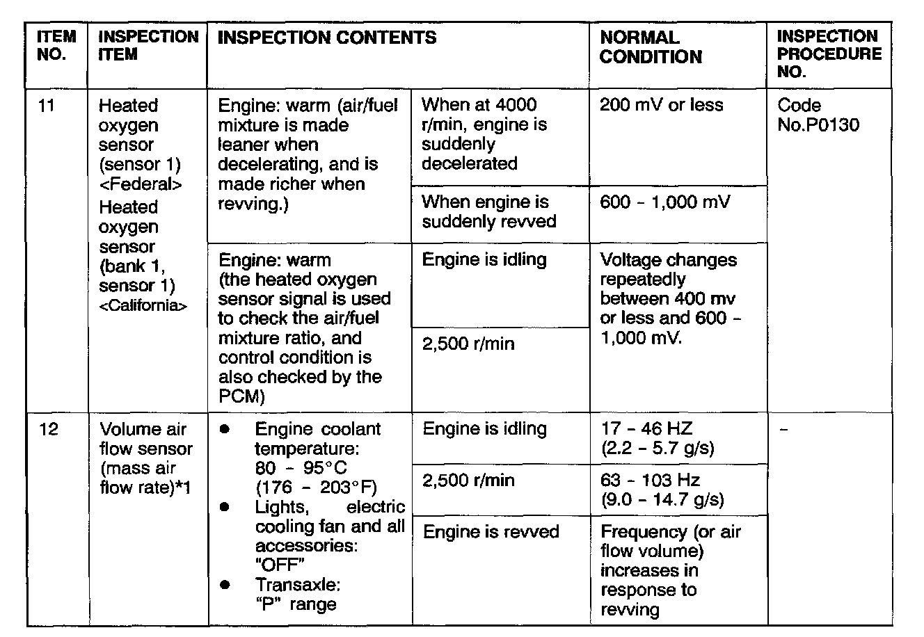 *1: In a new vehicle [driven approximately 500 km (311 mile) or less], the volume air flow sensor output frequency is sometimes 10% higher than the standard frequency