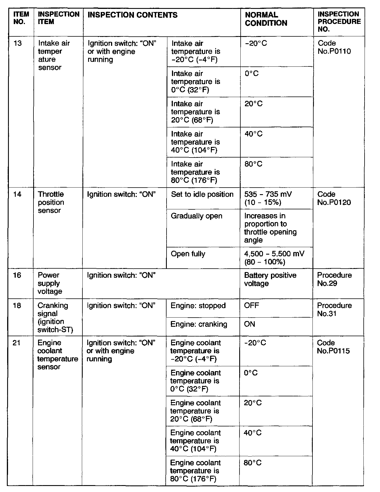 *2: If the idle speed is lower than the standard value on a very cold engine (approximately -20° C (-4° F) even when the IAC motor is fully opened, The air volume limiter built in the throttle body could be defective.