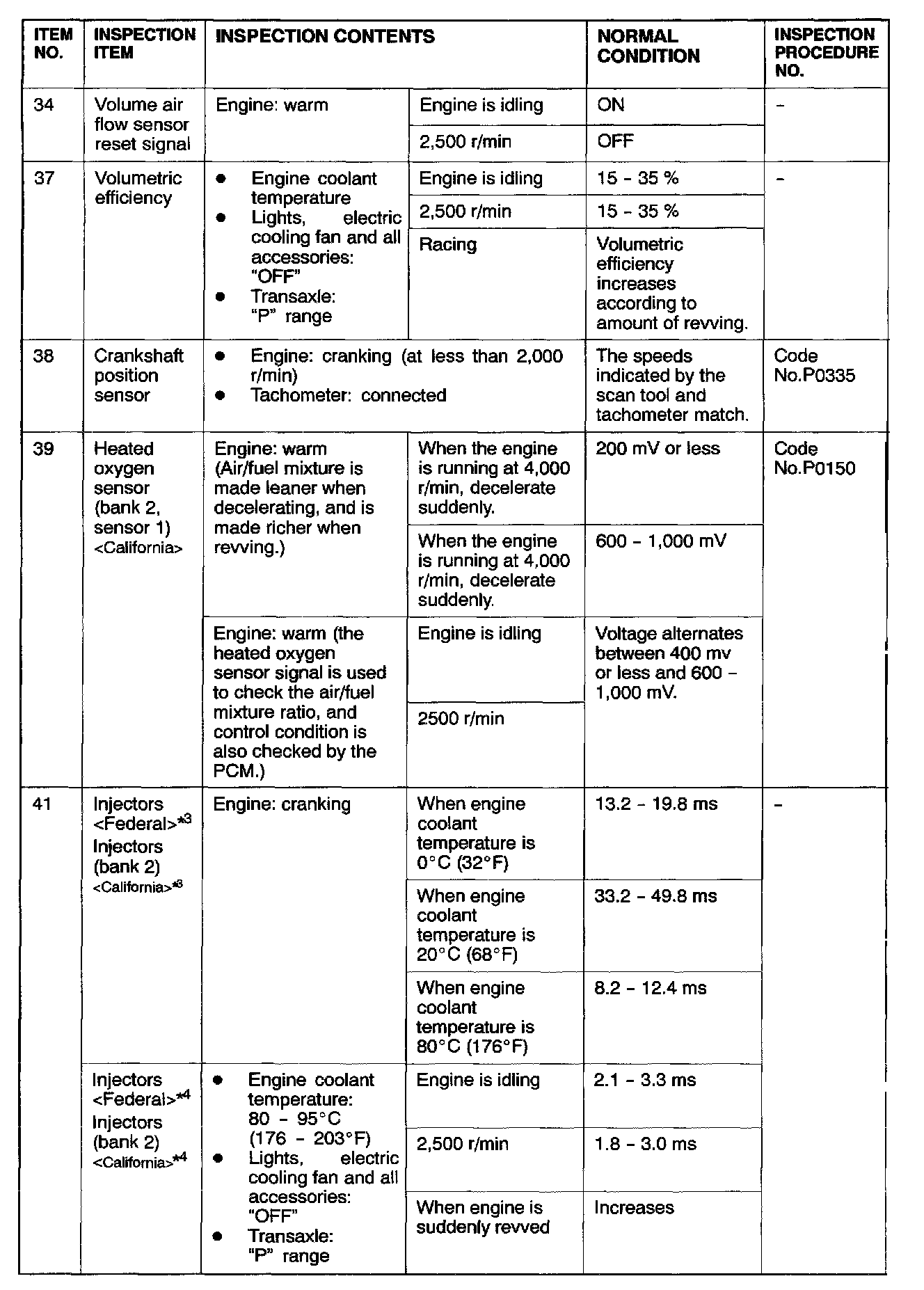 *4: In a new vehicle [driven approximately 500 km (311 mile) or less], the injector drive time is sometimes 10% longer than the standard time.