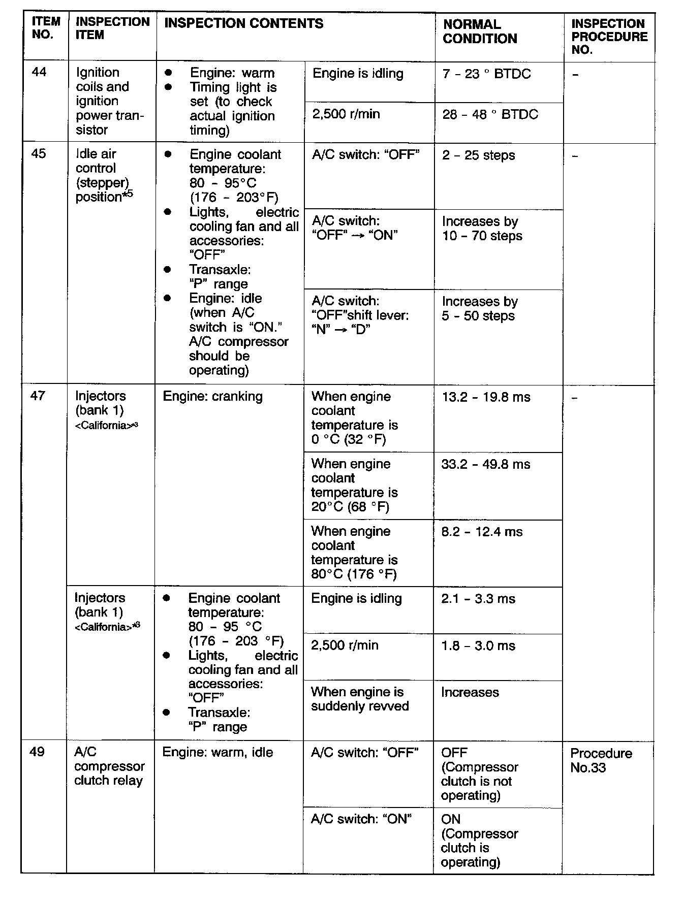 *3: The injector drive time represents the time when the cranking speed is at 250 r/min or below when the power supply voltage is 11 volts.