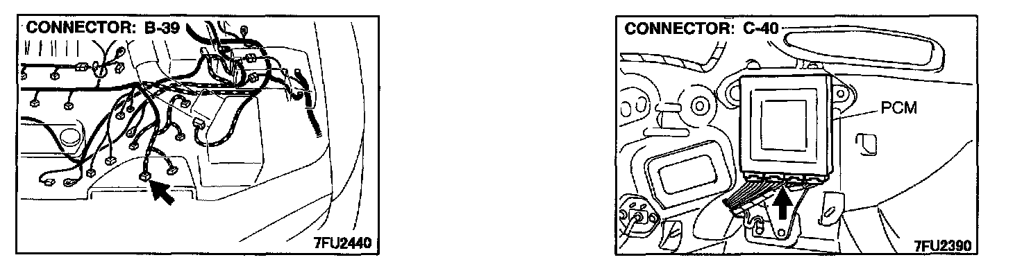 STEP 7. Check the harness connector B-39 at the park/neutral position switch and the harness connector C-40 at the PCM for damage.