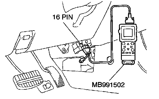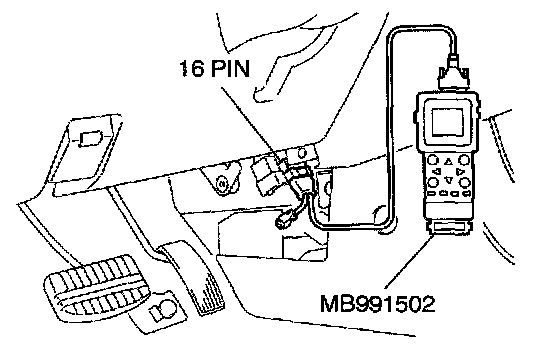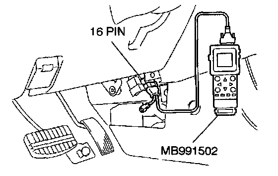 STEP 2. Using scan tool MB991502, read the diagnostic trouble code (DTC).