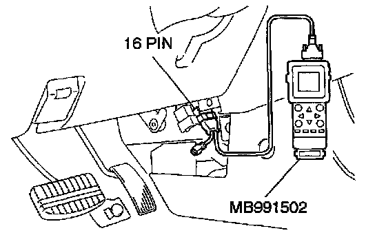 CAUTION: To prevent damage to the scan tool make, sure the ignition switch is "OFF" before connecting or disconnecting the scan tool.