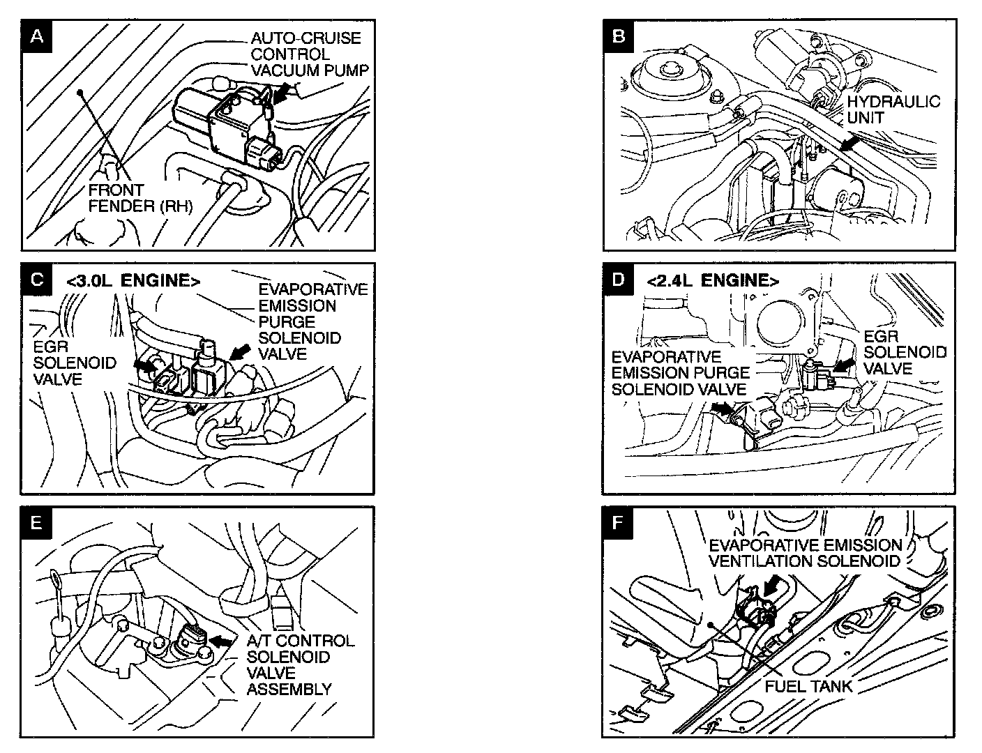 Solenoid And Solenoid Valve Location Views A - F: