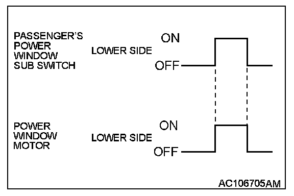 When the power window sub switch is pushed down, the system energizes its respective power window motor, and then passenger's window glass lowers.